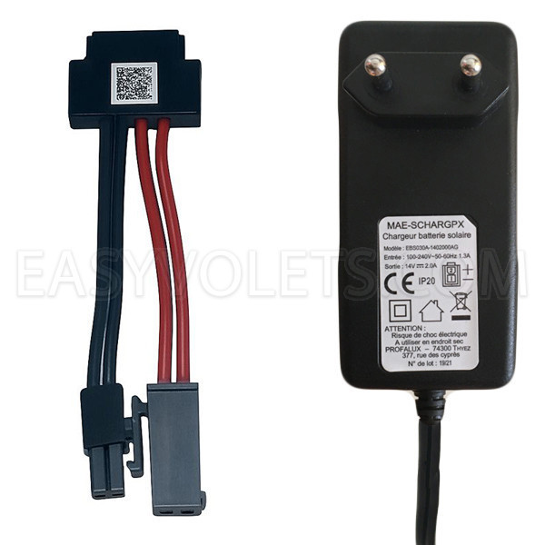 Le chargeur de batterie vient en complément pour le dépannage de la batterie d'une motorisation solaire Profalux ( Visio, Visio-moustiquaire, Presto...) lorsque celle-ci a subi une décharge trop conséquente interdisant le démarrage du moteur. Livré avec adaptateur pour prise impulse à partir de mars 2025.